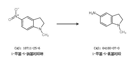 1.通过1-甲基-5-硝基吲哚啉合成1-甲基-5-氨基吲哚,收率约74%;