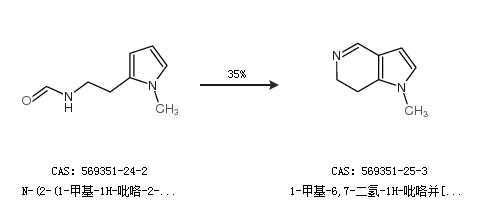 1.通过N-(2-(1-甲基-1H-吡咯-2-基)乙基)甲酰胺合成1-甲基-6,7-二氢-1H-吡咯并[3,2-c]吡啶,收率约35%;