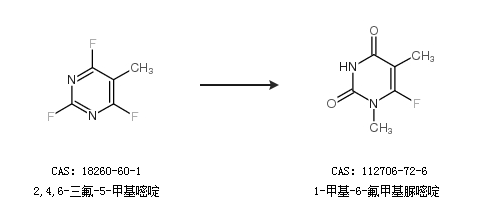2.通过2,4,6-三氟-5-甲基嘧啶合成1-甲基-6-氟甲基脲嘧啶
