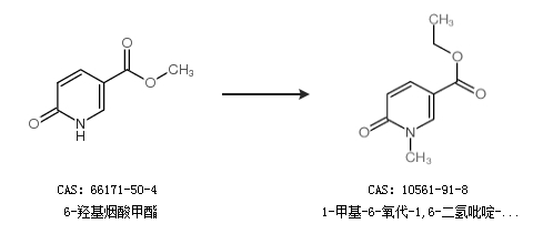 1.通过6-羟基烟酸甲酯合成1-甲基-6-氧代-1,6-二氢吡啶-3-羧酸乙酯