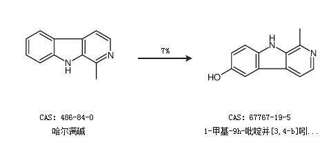 2.通过哈尔满碱合成1-甲基-9h-吡啶并[3,4-b]吲哚-6-醇,收率约7%;