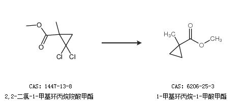 1.通过2,2-二氯-1-甲基环丙烷羧酸甲酯合成1-甲基环丙烷-1-甲酸甲酯