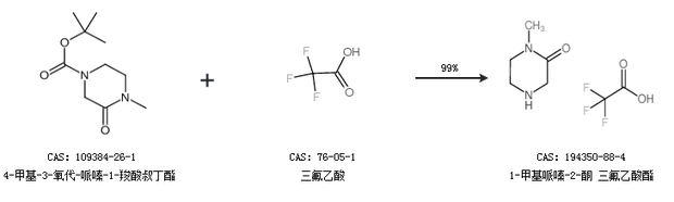 2.通过4-甲基-3-氧代-哌嗪-1-羧酸叔丁酯和三氟乙酸合成1-甲基哌嗪-2-酮 三氟乙酸酯,收率约99%;