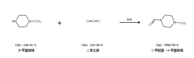 2.通过N-甲基哌嗪和二氧化碳合成1-甲醛基 -4-甲基哌嗪,收率约91%;
