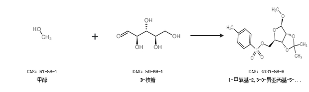 2.通过甲醇和D-核糖合成1-甲氧基-2,3-O-异亚丙基-5-O-对甲苯磺酰基-beta-D-呋喃核糖苷
