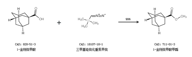2.通过1-金刚烷甲酸和三甲基硅烷化重氮甲烷合成1-金刚烷甲酸甲酯,收率约99%;