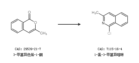 2.通过3-甲基异色烯-1-酮合成1-氯-3-甲基异喹啉