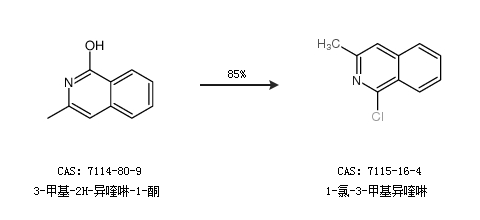 1.通过3-甲基-2H-异喹啉-1-酮合成1-氯-3-甲基异喹啉,收率约85%;