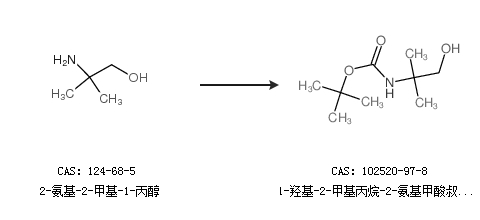 1.通过2-氨基-2-甲基-1-丙醇合成1-羟基-2-甲基丙烷-2-氨基甲酸叔丁酯,收率约99%;