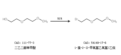 1.通过二乙二醇单甲醚合成1-溴-2-(2-甲氧基乙氧基)乙烷,收率约91%;