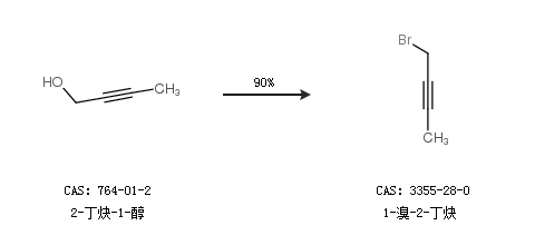 1.通过2-丁炔-1-醇合成1-溴-2-丁炔,收率约90%;