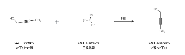 2.通过2-丁炔-1-醇和三溴化磷合成1-溴-2-丁炔,收率约58%;