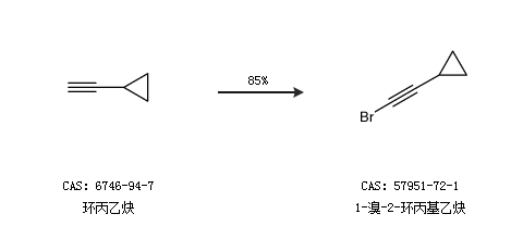 1.通过环丙乙炔合成1-溴-2-环丙基乙炔,收率约85%;