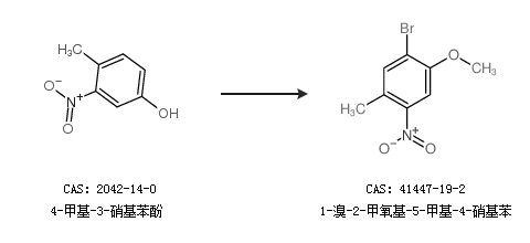 1.通过4-甲基-3-硝基苯酚合成1-溴-2-甲氧基-5-甲基-4-硝基苯