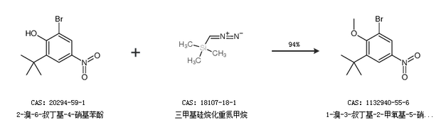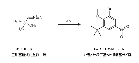 1.通过三甲基硅烷化重氮甲烷合成1-溴-3-叔丁基-2-甲氧基-5-硝基苯,收率约90%;