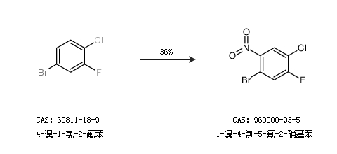 1.通过4-溴-1-氯-2-氟苯合成1-溴-4-氯-5-氟-2-硝基苯,收率约36%;