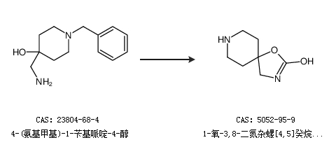 2.通过4-(氨基甲基)-1-苄基哌啶-4-醇合成1-氧-3,8-二氮杂螺[4,5]癸烷-2-酮