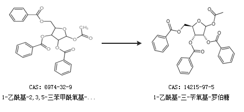 英文别名 1-O-Acetyl-2,3,5-tri-O-benzoyl-D-ribofuranose;2,3,5-tri-O-benzoyl-1-O-acetylribofuranose;1-O-acetyl-2,3,5-tri-O-benzoylribofuranose;1-O-Acetyl-2,3,5-tri-O-benzoylribose;