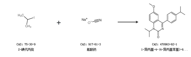 1.通过2-碘代丙烷和氰酸钠合成1-异丙基-4-(4-异丙基苯基)-6-甲氧基喹唑啉-2(1H)-酮