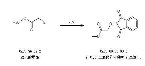 2.通过溴乙酸甲酯合成2-(1,3-二氧代异吲哚啉-2-基氧基)乙酸甲酯,收率约70%;