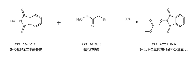 1.通过N-羟基邻苯二甲酰亚胺和溴乙酸甲酯合成2-(1,3-二氧代异吲哚啉-2-基氧基)乙酸甲酯,收率约83%;