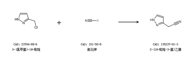 1.通过3-(氯甲基)-1H-吡唑和氰化钾合成2-(1H-吡唑-3-基)乙腈