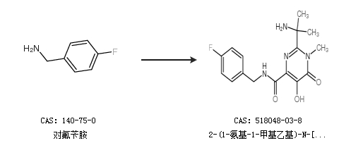 英文别名 2-(2-aminopropan-2-yl)-N-(4-fluorobenzyl)-5-hydroxy-1-methyl-6-oxo-1,6-dihydropyrimidine-4-carboxamide;2-(2-Aminopropan-2-yl)-N-(4-fluorobenzyl)-5-hydroxy-1-methyl-6-oxo-1,6-dihydropyrimidine-4-carboxami;2-(1-amino-1-methyl-ethyl)-5-hydroxy-1-methyl-6-oxo-1,6-dihydro-pyrimidine-4-carboxylic acid 4-fluoro-benzylamide;2-(1-Amino-1-methylethyl)-N-(4-fluorobenzyl)-5-hydroxy-1-methyl-6-oxo-1,6-dihydropyrimidine-4-carboxamide;