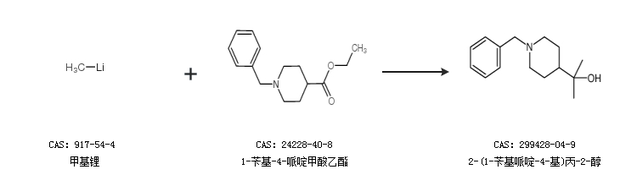 1.通过甲基锂和1-苄基-4-哌啶甲酸乙酯合成2-(1-苄基哌啶-4-基)丙-2-醇