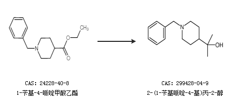 2.通过1-苄基-4-哌啶甲酸乙酯合成2-(1-苄基哌啶-4-基)丙-2-醇