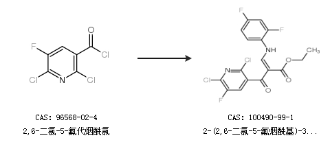 2.通过2,6-二氯-5-氟代烟酰氯合成2-(2,6-二氯-5-氟烟酰基)-3-((2,4-二氟苯基)氨基)丙烯酸乙酯