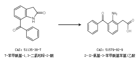 1.通过7-苯甲酰基-1,3-二氢吲哚-2-酮合成2-(2-氨基-3-苯甲酰基苯基)乙酸