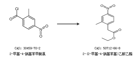 1.通过2-甲基-4-硝基苯甲酰氯合成2-(2-甲基-4-硝基苯基)乙酸乙酯