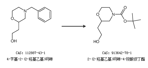 2.通过4-苄基-2-(2-羟基乙基)吗啉合成2-(2-羟基乙基)吗啉-4-羧酸叔丁酯