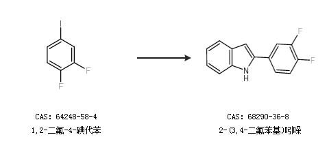 1.通过1,2-二氟-4-碘代苯合成2-(3,4-二氟苯基)吲哚