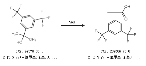 2.通过2-[3,5-双(三氟甲基)苯基]丙-2-醇合成2-(3,5-双-三氟甲基-苯基)- 2-甲基-丙酸,收率约56%;