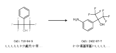 1.通过1,1,1,3,3,3-六氟代-2-苯基-2-丙醇合成2-(3-氨基苯基)-1,1,1,3,3,3-六氟丙烷-2-醇