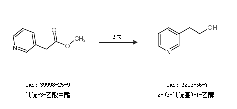 1.通过吡啶-3-乙酸甲酯合成2-(3-吡啶基)-1-乙醇,收率约67%;