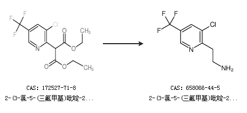 1.通过2-(3-氯-5-(三氟甲基)吡啶-2-基)丙二酸二乙酯合成2-(3-氯-5-(三氟甲基)吡啶-2-基)乙胺