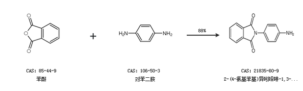 2.通过苯酐和对苯二胺合成2-(4-氨基苯基)异吲哚啉-1,3-二酮,收率约88%;