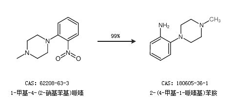 1.通过1-甲基-4-(2-硝基苯基)哌嗪合成2-(4-甲基-1-哌嗪基)苯胺,收率约99%;