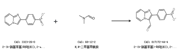 2.通过2-(4-硝基苯基)咪唑并[1,2-a]吡啶和N,N-二甲基甲酰胺合成2-(4-硝基苯基)-咪唑并[1,2-a]吡啶-3-甲醛
