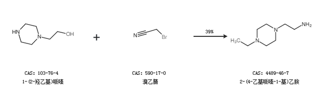 1.通过1-(2-羟乙基)哌嗪和溴乙腈合成2-(4-乙基哌嗪-1-基)乙胺,收率约39%;