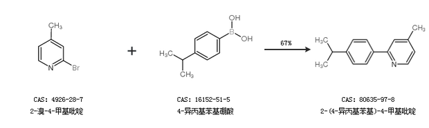 1.通过2-溴-4-甲基吡啶和4-异丙基苯基硼酸合成2-(4-异丙基苯基)-4-甲基吡啶,收率约67%;