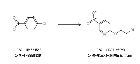 1.通过2-氯-5-硝基吡啶和乙二醇合成2-(5-硝基-2-吡啶氧基)乙醇,收率约93%;