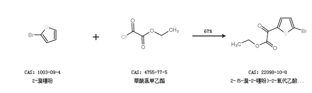 1.通过2-溴噻吩和草酰氯单乙酯合成2-(5-溴-2-噻吩)-2-氧代乙酸乙酯,收率约67%;