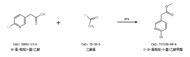 1.通过(6-氯-吡啶3-基)乙酸和乙酰氯合成2-(6-氯吡啶-3-基)乙酸甲酯,收率约97%;