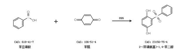 1.通过苯亚磺酸钠和苯醌合成2-(苯磺酰基)-1,4-苯二醇,收率约93%;