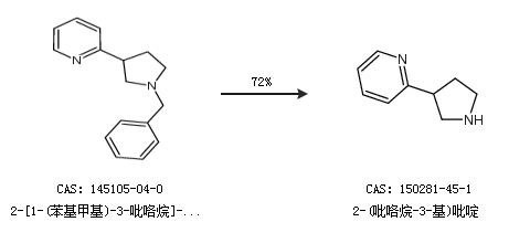 1.通过2-[1-(苯基甲基)-3-吡咯烷]-吡啶合成2-(吡咯烷-3-基)吡啶,收率约72%;