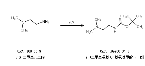 1.通过N,N-二甲基乙二胺合成2-(二甲基氨基)乙基氨基甲酸叔丁酯,收率约95%;