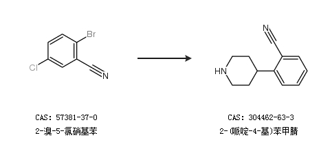 2.通过2-溴-5-氯硝基苯合成2-(哌啶-4-基)苯甲腈